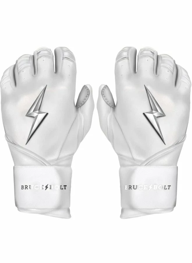 The Black Premium Pro Chrome Series Long Cuff is one of our favorite pairs of Bruce Bolt Gloves, the all white look gives those looking for a clean look a pair of the most durable batting gloves on the market. If you have the need for gloves that last, these are definitely a great option!