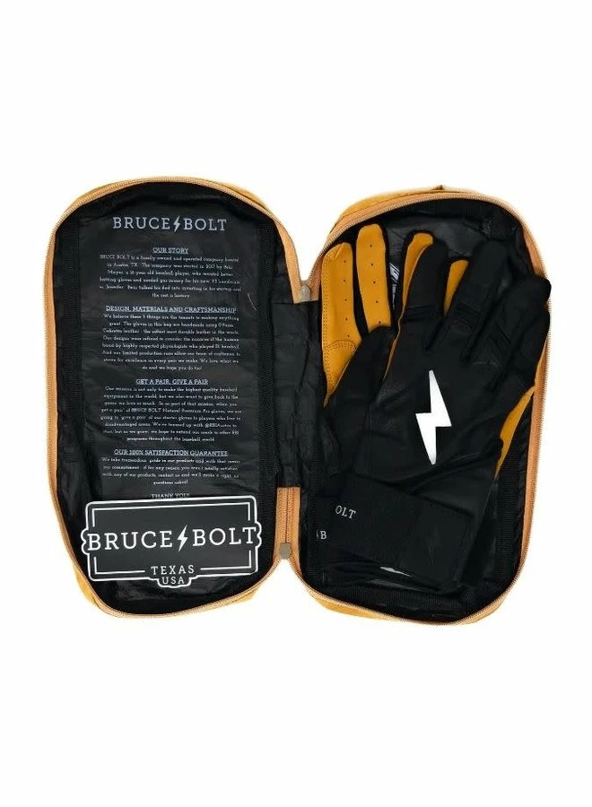 HIGHEST QUALITY, MOST DURABLE BATTING GLOVE IN BASEBALL: Each pair of BRUCE BOLT batting gloves are handmade by skilled craftsmen using only the highest quality 0.9mm Cabretta leather and stitching techniques which makes our gloves buttery soft but more durable than any other glove on the market.