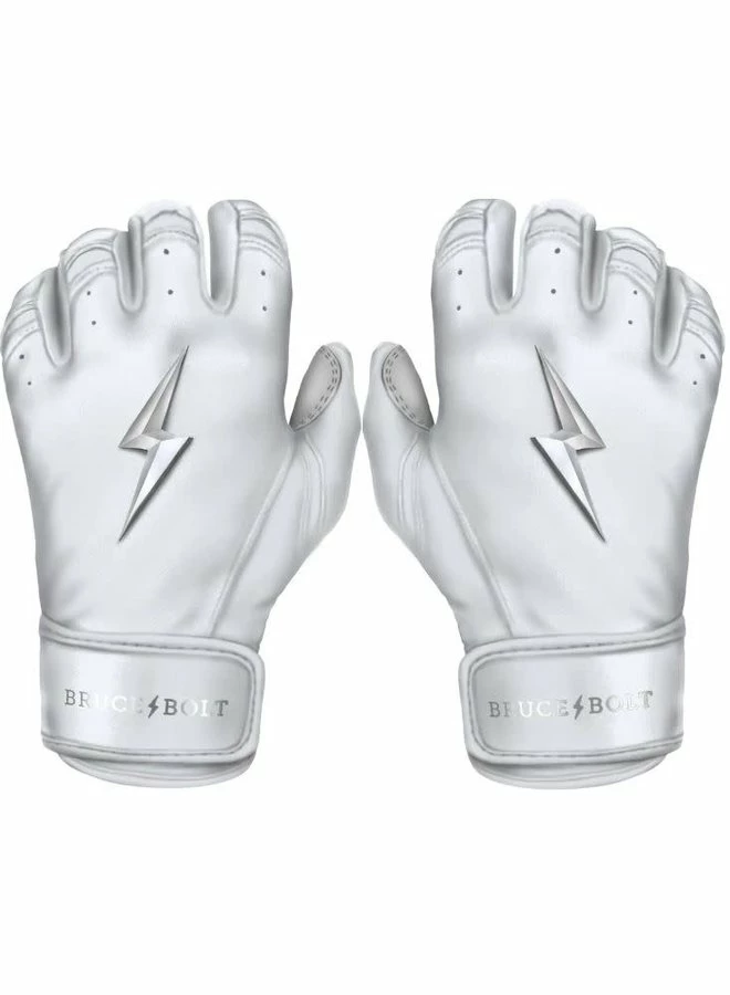 HIGHEST QUALITY, MOST DURABLE BATTING GLOVE IN BASEBALL: Each pair of BRUCE BOLT batting gloves are handmade by skilled craftsmen using only the highest quality 0.9mm Cabretta leather and stitching techniques which makes our gloves buttery soft but more durable than any other glove on the market.