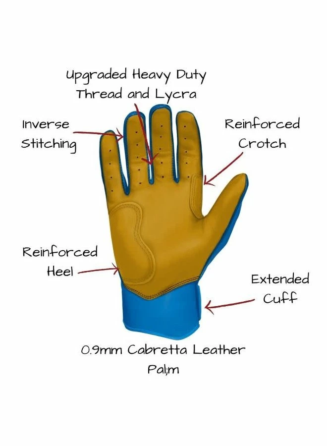 0.9 MILLIMETER DOUBLE REINFORCED CABRETTA LEATHER PALM DOESN’T GET HARD OR CRUNCHY: Cabretta leather is the highest quality leather in the world. It offers superior “feel” and durability characteristics and it’s also unbelievably soft! So soft, players can’t believe how great these gloves feel when they first try them on. Our 2020 line features 2 reinforcement areas where we saw our gloves rip last year. And our gloves don’t get hard and stiff and if they do simply rub leather conditioner or mink oil inside and out and they’ll be as soft as when you bought them.