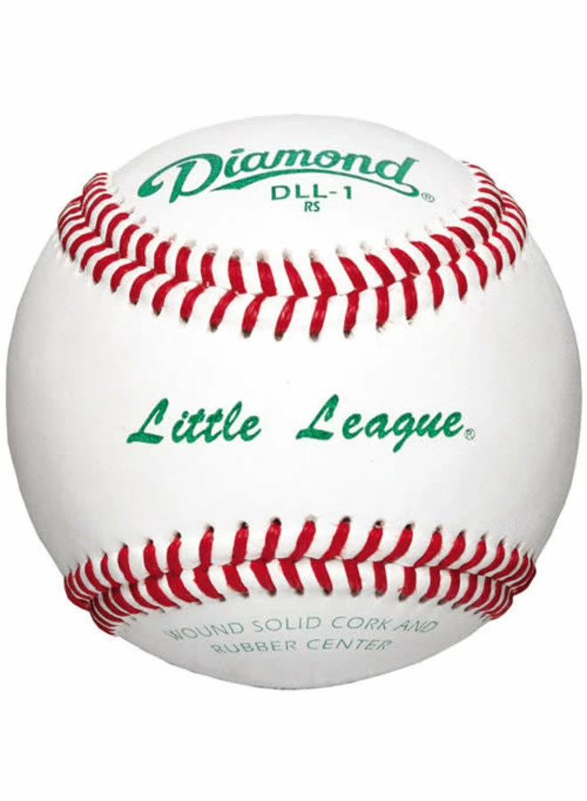 The DLL-1 Baseball features a premium leather cover, a cork/rubber pill core and select grey wool blend windings for excellent durability. The Diamond® Little League® Baseball is ideal for regular season play. Includes 1 ball per purchase.