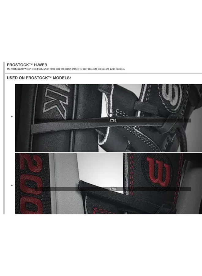 The most popular Wilson infield web, which helps keep the pocket shallow for easy access to the ball and quick transfers.